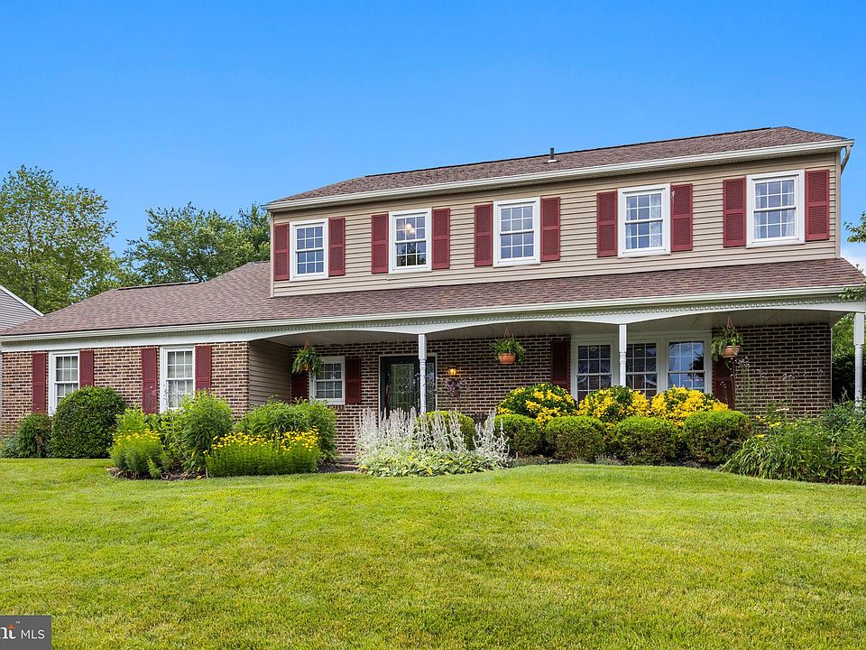 Welcome to 255 Newgate Road in the highly sought-after Highland Gate neighborhood and award-winning Neshaminy School District. Brimming with curb appeal and completely move-in ready, this 4 bedroom, 2.5 bath colonial has been meticulously maintained and updated. Upon arrival, enter through the covered front porch that has extensive landscaping and provides a peaceful, relaxing area to watch the world go by. The open layout of the first floor provides an easy, casual flow. The updated eat-in kitchen boasts gleaming granite countertops with shaker-style cabinets and opens to the large family room featuring a wood-burning fireplace. The kitchen also opens to the dining room which connects to the large living room/home office area with beautiful hardwood flooring. A large laundry/mud room leads to the 2-car side entry garage. Enter the backyard through the family room sliding glass doors that lead to a covered patio spanning the entire length of the house. The patio is the perfect spot to entertain guests or to kick back and relax while watching the big game on the outdoor 55-inch screen TV that is included in your new home. The backyard has been beautifully landscaped and is larger than the typical lot size you will see in the neighborhood. The second floor of the home boasts hardwood flooring in all of the bedrooms. The primary bedroom has a custom walk-in closet and a completely remodeled ensuite bathroom with two sinks and a large tiled and glass shower enclosure. There are 3 additional nicely sized bedrooms that share the updated hall bath. Not to be missed is the finished basement with lots of storage space, a cedar closet, a wet bar, additional entertainment space, and an exercise area. Fantastic location within walking distance to Maple Point Middle School and Community Park, with easy access to multiple commuter routes and an array of shopping choices.