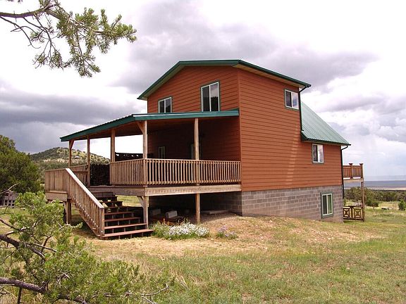 This choice property is located southwest of Datil, NM in the Sugarloaf Mountain Subdivision. Bordering the Cibola National Forest the property encompasses 6.78 acres. Improvements include a 1,152 sq. ft. tri-level custom built home, a productive well rated at 10 GPM's, underground electric and septic. The ground level is not completely finished but has all the plumbing for a bathroom, laundry room and bedroom. The second level is accessed through a covered deck that leads into a open living/ kitchen area and master bath. The third level has a very spacious master bedroom that overlooks the living/kitchen area and a balcony that allows 10+ mile views of the surrounding mountains and plains. Heating is provided by a wood burning stove and wired in wall heating.