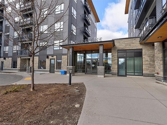 One of the largest units available! Top floor with a 270 degree view, this unit combines a beautiful living space with equally beautiful scenery. Offering 3 bedrooms and 2 bathrooms, unit 602 spans 1130 square feet of finished living space and outdoor balconies. The unit is finished throughout with a luxury vinyl plank floor and has a wide open modern kitchen, dining, and living room featuring centre island, quartz countertops, and stainless steel appliances. The bathroom combines a high gloss porcelain floor and wall tile with glass shower panel to give a spa like finish. The primary suite features the 3 piece ensuite and walk in closet and takes full advantage of the corner location in the building showcasing 90 degree window walls making for a unique and bright space. The second bedroom sits next to the 4 piece bathroom with the 3rd bedroom being semi private from the rest and featuring its own balcony also making it ideal for an office. The Blackstone condos successfully combine style with convenience offering state of the art amenities; stunning party lounge, patio, gym, dog wash station, and bike storage. Also located next to a commercial plaza with easy access to public transit and close proximity to Conestoga mall. This unit comes complete with one underground parking space with EV charging available. Don’t miss out!