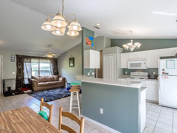 Hunters, fishermen, hikers, ATVers and just plain ''like to be in the woods'' people....check this home out!! Come see this contemporary, concrete block 3BR/2BTH home on 26+ acres with approximately two acres cleared. Featuring a very open floor plan with white raised panel cabinetry, tile in all the main living areas and vaulted ceilings. There is an inside laundry room and a brand new water softening system. Half of the one car garage has been converted into a man cave/den, but there is still plenty of room to store your toys in the other half. This home also offers a gated entry plus a 6 car covered carport/pole barn. Two horse pastures need minimal work to be totally fenced. Boat ramp to Lake George, currently under construction by the county is less than two miles away.