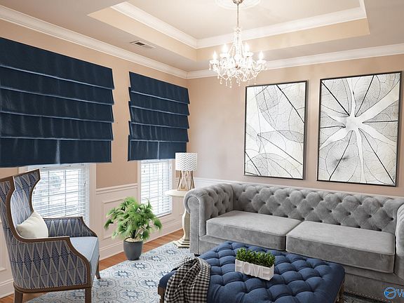 - Features: Crown Molding, Smooth Ceiling, Tray Ceiling(s), Window Cov, Wood Floor