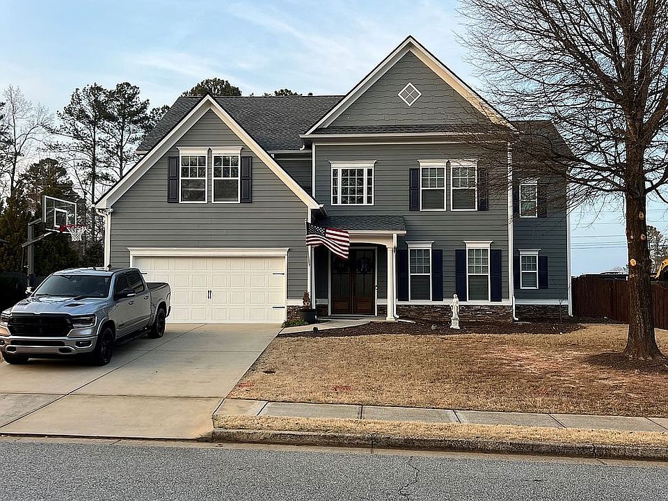 Welcome home to this beautiful, former model home complete with 5 bedrooms and 4 baths in the lovely and sought-after Park at Steels Bridge neighborhood. This home features a dramatic great room with 2 story ceiling, fireplace surrounded by windows that is open to the dining room and kitchen. The eat-in kitchen is complete with gorgeous granite counters, stainless steel appliances, a lovely glass tiled backsplash, a walk-in pantry, and to top it all off thee is a built-in workstation! Additional fireplace in the keeping room too! Retreat to the owner's suite, which is complete with tray ceiling, walk-in closet, separate his/her vanities, shower, and soaking tub. Secondary upper-level bedrooms feature vaulted ceilings! Laundry is conveniently located on this level too! Relax on your patio in your fenced-in backyard! Amenity-rich community including pool and tennis/basketball courts. No neighbors directly in front of the home! Close distance to Lake Allatoona. Come and see!