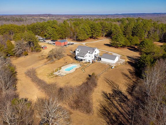This spacious 2 story house, with a full basement and in-ground pool, sits on 10 acres, in which 5 are wooded. The basement includes a second kitchen and second laundry room. This house has a total of 6 bedrooms and 3 full bathrooms. This property features a 3 car, detached garage with a covered breezeway connecting to the house. The 2 HVAC units, 2021, come with a 1 year maintenance plan. The metal roof is less than 5 years old. Don't miss the chance to see this beautiful home! All pertinent information to be verified by buyer or buyers agent.
