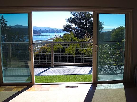 Live in beautiful Mill Valley, with an easy access to San Francisco and public transportation. Minutes from 101 just above Tam Junction off the Stinson exit. Upper unit of a single family home with private entry, private parking deck for 2 cars, fenced yard, garden area, stone patio and 2 decks with great views of Richardson Bay to Bay Bridge. Property includes all hardwood floors, open concept kitchen, dining and living area, newly renovated kitchen with granite counters, new appliances, gas stove, new double pane windows, wood fireplace, washer/ dryer, dishwasher, 2 bedrooms and bathroom with tub. Second back deck with space for enjoying the outdoors and entertaining , garden with fruit trees and golf putting green . Quiet residential community. Note property has 30 stairs to access home entry from upper parking deck. Owner pays water, and sewer. Tenant pays garbage, cable, gas / electric monthly.