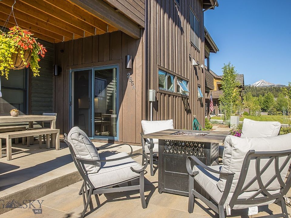 Enjoy luxury living in the heart of Big Sky's Town Center! Professionally decorated and offered fully furnished, this end unit location provides a lovely, manicured side yard with an upgraded exterior patio for outdoor living at its best, with unobstructed views of Lone Peak – a great space to wind down in the evening and enjoy the outdoor firepit and hot tub. This spacious 3 bd, 3.5 ba residence with 2 car garage and open kitchen/living/dining room provides plenty of space for entertaining family and friends. Owners added $20k+ worth of new landscaping in 2021, creating a private feel on the patio as you admire the surrounding mountain views. Other upgrades include an epoxy garage floor, a humidification system, water softener and custom cabinetry in the living room. And don’t forget about the two roomy upper-level decks where you can enjoy your morning coffee or a glass of wine as you take in the sunset and mountain views after a busy day playing in the great outdoors of Big Sky!