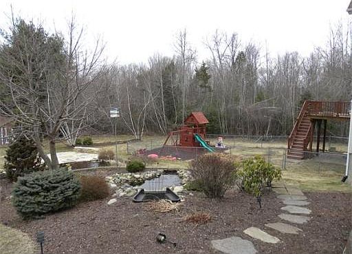 Privacy and wonderful space in this 4 bedroom, 3.5 bath colonial set on over an acre of land in one of Ludlow's finest neighborhoods! Features a nice open floor plan. The eat-in kitchen has a breakfast bar and plenty of windows to overlook the scenic backyard with waterfall feature, fish pond, and surrounding stone work/patio. The family room has a fireplace, sliders to the deck, and French doors leading to the formal living room (currently being used as a playroom). The master bedroom suite boasts a large walk-in closet, nice sitting area w/picture window and a master bath w/jacuzzi, shower, double vanity and separate make up area. The finished walk out basement is fabulous and has another fireplace and a full bath!! A pleasure to show...this home won't disappoint!