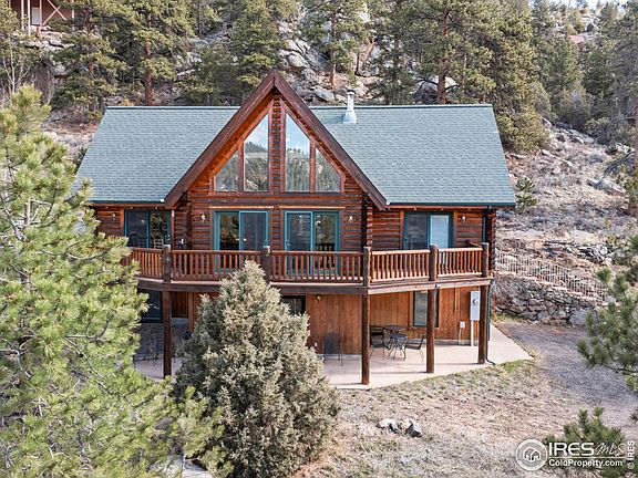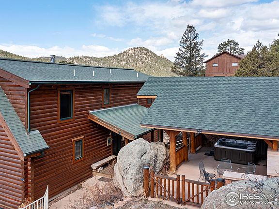 Back on the market through no fault of the property!! A stunning, log home in Estes Park boasts 3 bedrooms and 3 bathrooms across 3 levels of spacious living. The warmth of the wood beams and natural light filtering in through the south facing windows, certainly welcome you home. The private location at the end of the road is surrounded by native trees, rock outcroppings, and breathtaking views of the valley. Relax and unwind in the covered pavilion, perfect for enjoying the hot tub or lounging in the fresh mountain air. This property is a nature lover's dream, offering the perfect escape from the hustle and bustle of life. With 2738 square feet of living space, this is the ideal retreat for your new mountain home! New roof and water heater installed summer 2023.