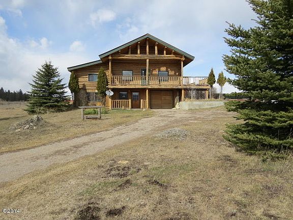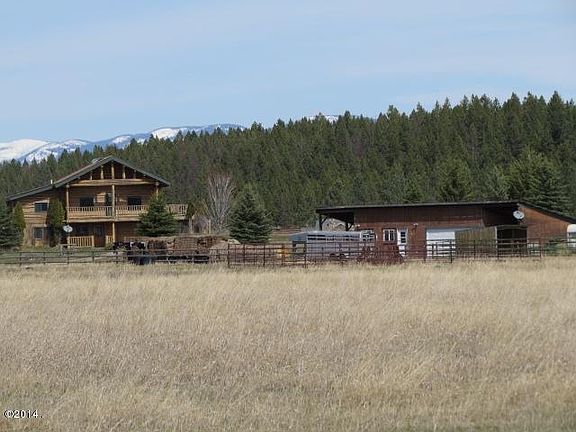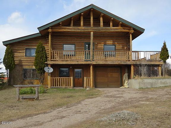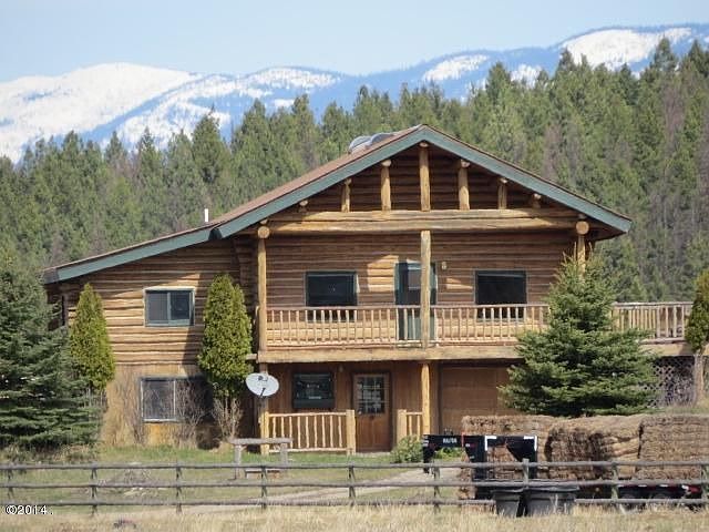 3 bedroom 2.5 bath log home on almost 10 acres, fenced for animals, views of the mountains east and west, wrap around deck on S & E sides, metal roof, big kitchen, nice loft. Minimal covenants. Under-house 1 car gar. & detached 26X40 garage/shop with living quarters. Great views of the mountains and just the right distance from schools, hospital and shopping. Across from elk ranch. Private drive.