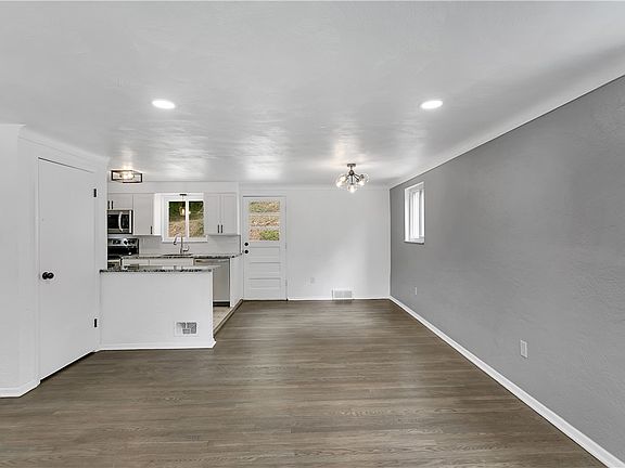 This home has ALL NEW- Furnace/ central air system, water heater, Roof, Windows including glass block, garage door. New electric service lighting fixtures, ceiling fans, outlets/switches. door hardware. You will be greeted w/ landscaped yard. The exterior of the home has been painted. Covered front porch is ideal for entertaining or relaxing. Upon entering you'll be welcomed by gorgeous refinished hardwood flooring. There is an open concept living room, dining room. The kitchen has been updated with new ceramic tile, cabinets, Granite counter tops and island, Subway backsplash, and new stainless appliances. There are 3 bedrooms with ample closet storage. The bathroom will WOW you w/ designer tile flooring, subway tile wall/ tub surround, New vanity w/ gold fixtures. The basement has been finished with new vinyl flooring. You will find a half bath and laundry room w/ storage. Fully fenced rear yard and patio. 1 year home warranty included. Close to Monroeville, 376 and Turnpike