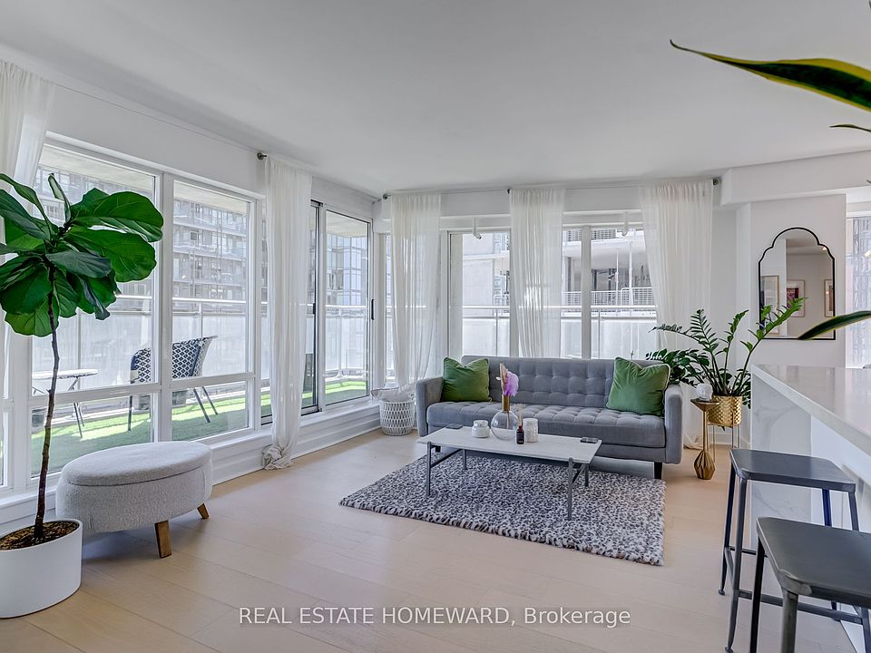 Stunning Sun-filled & Renovated 2-Bedroom Corner Unit with Wrap Around Terrace in the Heart of Downtown. Welcome to Suite 1004 at 255 Richmond Street East, upgraded with $50,000 in high-end renovations, this unit is the perfect blend of style and functionality. Enjoy brand-new wide-plank engineered hardwood floors throughout and a fully renovated designer kitchen featuring a beautiful quartz waterfall island countertop, custom cabinetry, and stainless steel appliances. The open-concept living and dining space is ideal for entertaining, while both bedrooms offer excellent storage and natural light, with a good sized walk-in closet in the primary bedroom. The bathroom has a separate shower and soaker tub option for you to choose from! Step out onto your large wrap-around terrace and take in the city views, or enjoy the buildings fantastic amenities, including 24-hour concierge, gym and party/meeting room, and BBQ area. Parking and locker included. Unbeatable location steps to King Street, St. Lawrence Market, Financial District, TTC, and more. Low maintenance fees that includes heat, hydro, and water! This unit represents excellent value! Just move in and enjoy downtown living at its best! Check out the virtual tour and book a viewing today!