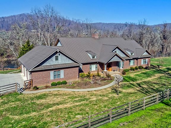 Custom built one level rancher detailed with above quality craftsmanship. Approx 400 ft of water front situated on 2 lots.World class fly fishing. Kitchen includes stainless appliances and granite tops. Great room displays fireplace and cathedral tongue & groove ceiling. Split bedroom plan with master suite on one end. Master bath has heated flooring whirlpool and walk in shower. Stunning library with sliding ladder. Screened in porch overlooking the clinch river.A must see