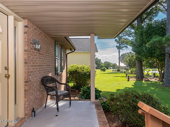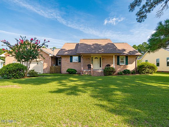 Low maintenance and well-maintained brick home in Swansboro's highly desirable waterfront community of River Reach! One level nestled on over a half-acre offers split floor plan with generous master suite, two spacious bedrooms, flex room, and ample storage throughout. Open concept living with large family room featuring vaulted ceilings and fireplace with lots of natural sunlight overlooking back patio and inground pool. Eat-in kitchen with pantry, breakfast bar, and plenty of counter space. Located near River Reach boat dock and ramp, you're just a short boat ride to downtown Swansboro for dining and shopping! The White Oak River allows quick and easy access to the ICW for island hopping or a day of fishing! Make ''The Friendly City by the Sea'' your home!