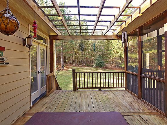 Two 2-Car Garages. Detached 2-car is HUGE w/full finished 2nd Floor w/Full Bath! Doors Front & Back For Drive Thru. Home sits on 1.46 landscaped acres, plenty of Trees for privacy, cul-de-sac location.Kitchen w/granite & SS, Gas Range in island, breakfast & Frml Dining. Master Suite w/Trey Ceiling, w/Dual Granite Vanities, Garden tub & Tile Shower. Suite has access to Hot Tub Deck. 3 Total B/R's on Main Level, B/R & Bonus up. 3 total deck areas w/20x16 Screened. Zoysia Grass,Trans Home Warranty In Place.