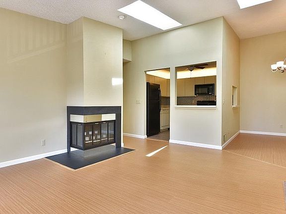 WOW! Just what you are looking for! Penthouse condo with view of pond. Desired end unit boasts bright & open floor plan accented by cathedral ceiling, skylights, wood laminate flooring & fireplace. Ceramic tile kitchen flooring. All appliances included. Laundry room in the unit. Updated bath. Plenty of storage with walk-in closet and full wall of closets. Woodland Hills offers a pool, clubhouse and playground. Walk to pool. Located only minutes to train, bus, highways and shopping.