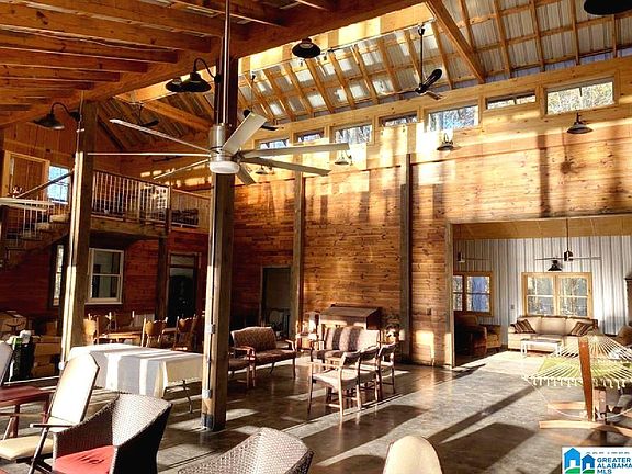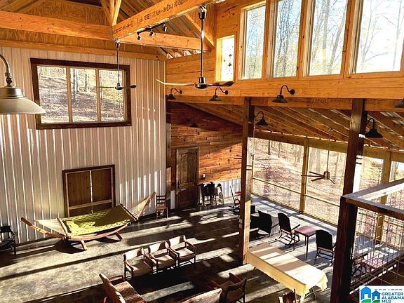 Stunning turnkey Barndominium, 33.5 acres, 652 ft of shoreline on a private 12.2 acre pond, and an abundance of wildlife… this property is an outdoorsman’s dream! This unique turnkey property would make a great Airbnb, hunter's retreat, or a residence for someone wanting to be completely off-grid! This self-sufficient, off-grid property sits on 33.5 wooded acres in rural Clay County, AL. Property is well situated to accommodate short term rentals or large group retreats. This outdoorsman’s paradise offers fishing on a private pond, hunting an abundance of wildlife on your own property or the adjacent Hollins WMA, and ample hiking at Mt. Cheaha and Talladega National Forest. Main structure is a self-sufficient off-grid solar powered Barndominium with a 2500 SF ground level handicap accessible footprint featuring: 2 BRs, 2 full BA, spacious kitchen area overlooking the pond, 3 lofts totaling 430 SF of additional sleeping space. Property comes partially furnished, making it fully turnkey!