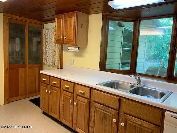 Updated 4 Bedroom, 2 Full Bath home situated on 2 private acres with above ground pool. Large living room with tiled sun window and skylight for your precious plants, two updated full baths, country kitchen with dining area and knotty pine walls. Hardwood floors, many built-ins, refrigerator 5 years old, stove 3 years old, dishwasher 2 years old, roof 10 years old and high efficiency furnace 3 years old. Driven well 75' deep along with a supplemental dug well. Newer Septic system is a 1000 gallon concrete tank. 2 car detached garage with electric needs some work and '' As Is''. Ariens snowblower is only 6 months old and stays along with the Cub Cadet 7 year old 46' cut riding mower and generator. Close to Catskill Mountains for hiking, sking and other outdoor sports.