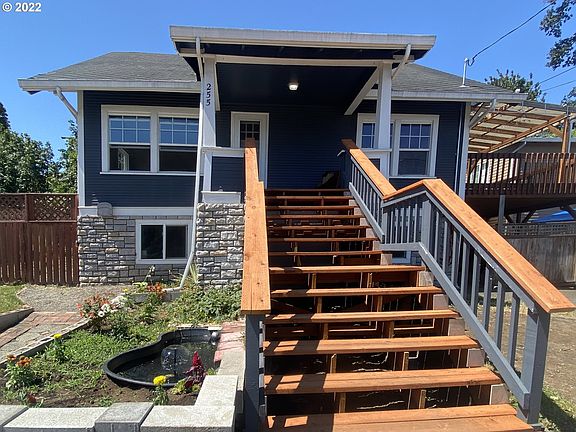 Updated 1918 home in Downtown St. Helens. Blocks away from River. Water Feature in Front Yard. Large Covered Front Porch. Laminate Floors. Primary Room on the Main w/Walk In Closet and Bath w/Clawfoot Tub. Built in Hutch. Custom Kitchen with Eating Bar. Tiled Laundry Room. Large Tiled Bathroom w/Walk In Shower and Large Soaking Tub. Multiple French Door entries to Wraparound Back Deck w/Large Covered Side Covered Patio. Large Basement Workshop w/Extra Storage under Deck. Fenced Side Yard.