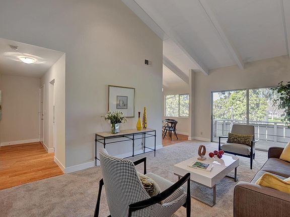 Remodeled second floor condo in desirable Parkview West complex! Formal entry with wood floors. Brand new kitchen with white shaker style cabinets, granite counters and new stainless steel appliances. Separate dining area with lots of natural light, new chandelier and wood flooring. Spacious living room with vaulted ceiling, new carpet and glass slider to balcony that overlooks the park. Large bedroom with new plush carpet, large closet and lots of natural light. Just remodeled bathroom features a stall shower with decorative tile surround and glass door enclosure. Vanity with granite counter top and shaker style cabinet, custom mirror and tile flooring. Almost everything has been redone including new interior paint and flooring throughout. Convenient location next to Rengstorff park and near downtown Mountain View and San Antonio Village.