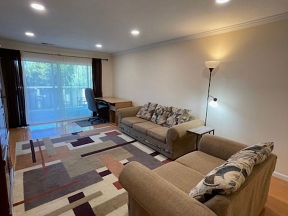 Fully furnished one bedroom condo in beautiful place near Rengstirff Park. There are a lot of amenities in complex , like swimming outdoor pool , gym, sauna, clubhouse etc. Unit is on the second floor with big balcony , ( unit has own entrance), facing the park, quiet green area. Living room includes : -sofa bed ( queen ) -love seat -standing lamp -office table with chair and table lamp -rug -tv with cabinet Kitchen with all appliances, dining table and 4 chairs Bedroom : - queen size bed - nightstand with lamp - dresser with mirror Unit has big bathroom with shower Looking for rent for 1 year ( and more) $2950 per month ( negotiable ) Available from January 20th, 2026 Please contact with any questions . Owner pays for water. Renter is responsible for electric. No smoking allowed. Last month's rent due of signing .