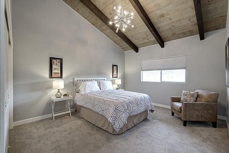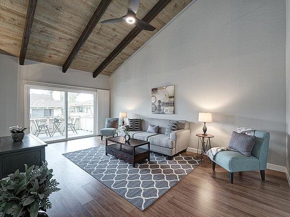 Beautiful large (812 sft) top floor 1 BR/1 Bath condo with gorgeous vaulted ceilings throughout, and a peaceful spacious deck nestled under the treetops overlooking an inner courtyard. This home includes a huge living room with wall-to-wall sliding door to a spacious deck, separate dining area, newly renovated kitchen with stainless steel appliances and white cabinets, stunning Quartz countertop, under-cabinet lighting, large master bedroom with oversized closet, updated bathroom with Quarts counter top, and hardwood floor throughout. This condo includes one covered parking space and an extra, locked storage room. Park View West amenities include beautiful maintained grounds with mature trees and 2 swimming pools, sauna, clean laundry room, exercise room, car wash stall, plenty of guest parking. There are reservable guest suites. The Park West community is pet friendly (1 cat or 1 small dog under 25lb). The condo is centrally located with walking distance to CalTrains, next to Rengsdorff Park with playgrounds, tennis courts and large greens. Walking distance to downtown Mountain View Castro Street and many restaurants. Trader Joe's, CostCo, Safeway, Whole Foods, Sprouts, Target, Walmart nearby. Centrally located to Google, LinkedIn, and other tech companies. RENT INCLUDES ALL UTILITIES (GAS, WATER, ELECTRICITY, GARBAGE)! LESSEE PAYS CABLE/INTERNET