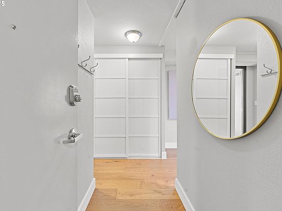 This unit includes a secure deeded parking space which is a must for living downtown Portland. There's an additional storage area, shared laundry, high-speed fiber optic internet, and air conditioning! There are over $30,000 of luxurious upgrades included in this unit, such as the brand-new engineered hardwood floors which enhance the allure of the home, contributing to a low-allergen environment. The unique interior french doors allow for a quick conversion to a guest bedroom when needed. Upgrades also include a new Trane furnace and air conditioner, new water heater, new blinds, new waterproof engineered hardwood floors, new hallway closet doors, fresh interior paint, new Frigidaire refrigerator, induction range, KitchenAid dishwasher, and a GE Profile microwave—all under full warranties!