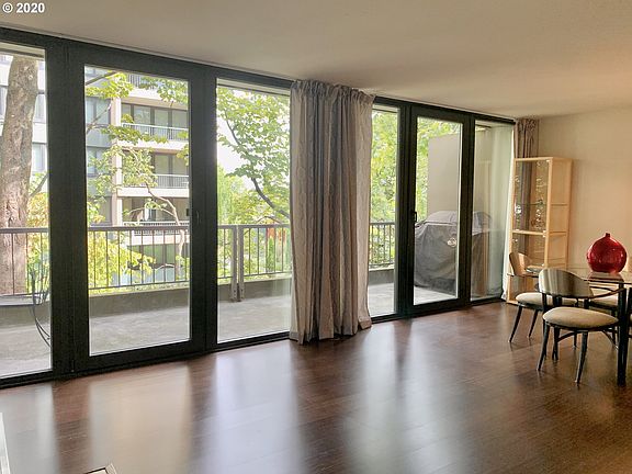 VERY rare ground level corner unit townhome style condo w/ large private courtyard and 3 bedrooms + 2 full baths! One deeded garage parking spot, community pool, party room & hot tub facility across the street. Building is secure, quiet and secluded, large balcony & dues include Fiberoptic internet, water, sewer & garbage. Remarkable proximity to amazing public and private schools, public transportation, shopping and amenities. A few blocks to the Saturday Farmers Market. [Home Energy Score = 5. HES Report at https://rpt.greenbuildingregistry.com/hes/OR10186476]