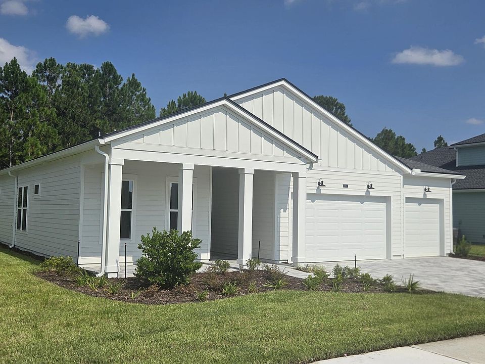 Unwind in the tranquility of The Homestead, an exclusive, gated, Toll Brothers neighborhood of Bartram Ranch. Walk to Top Rated Hickory Elem. & Swiss Point Middle School and zoned for Bartram HS. A natural gas community located in the heart of NW St Johns. The Barnwell Farmhouse is a one-level home located along a 70' privacy buffer. The serene, large back yard, 83 feet wide, by 137 feet deep, has ample room for a pool. This stunning single level home features an open plan concept with a spacious great room for friends and family to gather and is directly off the casual dining room. gourmet kitchen and island. Additional highlights of this home include a large laundry room connected to the primary walk-in closet. A flex room which easily converts to a bedroom. Three car garage, tankless water heater, pre-plumbed for a water softener, fully irrigated yard with re-use water. The new Amenity Center includes clubhouse, pool, fitness center, dog park, tot-lot and a multi-purpose field.