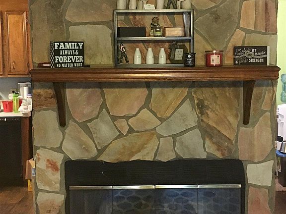 - Living Room: Fireplace, Ceiling-Vaulted, Floors-Laminate, Ceiling Fan