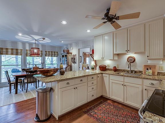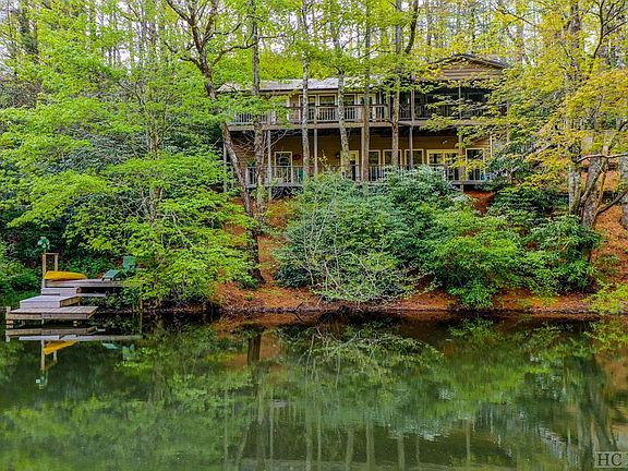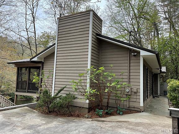 There are just a few steps from this charming 3 bedroom, 2.5 bath cottage to the Big Creek extension of Lake Sequoyah. Enjoy an afternoon on the lake in your canoe or kayak or fish from your own private dock. You are minutes from Main Street in Highlands with all the shopping, restaurants and social activities, but away from the hustle and bustle. Once you arrive, you won't want to leave. The property is in the town limits so you have all the amenities that the town provides. The main floor features the master bedroom and bath, and an open kitchen and dining area with granite counter tops. The dining area overlooks the open deck and gives you a treehouse effect. The large living area with a wood burning, stone fireplace opens to the screen porch adjoining the deck for late afternoon refreshments. The lower level is a second living space with another wood burning, stone fireplace, 2 bedrooms with 2 vanities and a shared tub/shower. There is a wet bar and patio area for your guests to enjoy. Steps to the dock and lake are accessible from this patio.