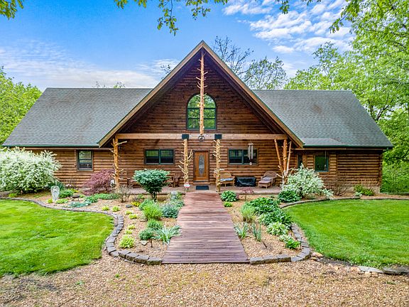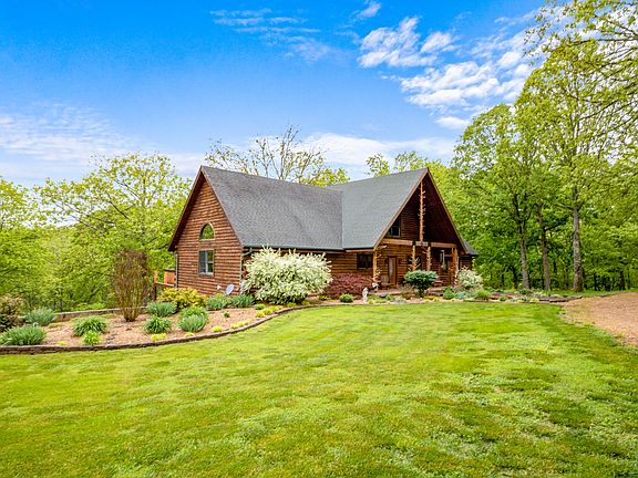 WELCOME HOME! This custom log home sits way off the road tucked in the heart of this tract that is filled with wildlife and memories to be made. The property is only 20 minutes from Springfield in the Rogersville School District. The beautiful views, custom high-end detail throughout, and location of this home boast so much character. The home consists of 3 bedrooms and 3.5 bathrooms with a very large living area, industrial-grade kitchen appliances with a dining room, and a large bar downstairs. You will take great pleasure in the two oversized master suites in this home and the huge layout it offers with massive ceilings. You will fall in love with the stone fireplace, custom railing, and beautiful rustic finishes throughout give you a private retreat to wake up to each day. Pulling into this secluded property you will find two circle driveways and two 2-bay garages with beautiful landscaping featured around the home. A matching 2000 square foot heated shop with concrete floors, a full bathroom, and large overhead doors invite you to bring all your toys and equipment with you. The land around this custom log home offers excellent opportunities for outdoor enthusiasts. The location of this property also provides amazing entertainment with riding trails, lakes, golf courses, and more all in a short distance. Do not hesitate on this amazing listing and call me directly today to be in your dream home tomorrow.