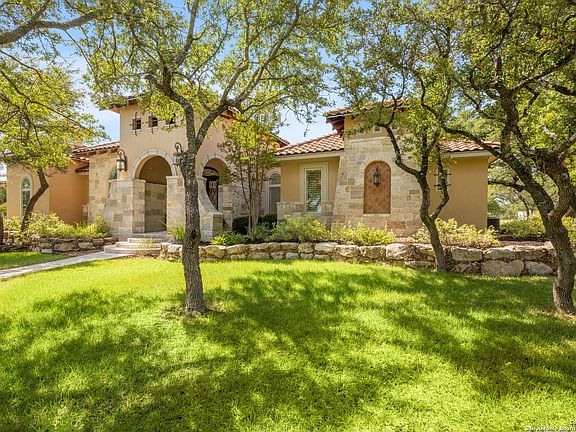Gustavo Arredondo-designed custom home on 4.04 acres in Spring Creek Estates, just minutes from downtown Boerne! This beautifully updated 4,304 SF residence offers an open-concept layout filled with natural light, soaring ceilings, and rich Alder cabinetry throughout. Chef's kitchen features a gas cooktop, center island, double ovens, and oversized pantry. Spacious living with rock fireplace and elegant dining areas make entertaining effortless. Split primary suite includes patio access, sitting area, and a spa-like bath with dual vanities, jetted tub, and walk-through shower. Upstairs game room with wet bar and half bath. Plantation shutters, fresh paint, and new carpet in bedrooms. Expansive 30'x30' flagstone patio with outdoor kitchen overlooks a lush lawn and private greenbelt-perfect for future pool or casita. Additional bedroom with loft adds unique charm. Gated hill country living with fiber internet, close to top schools, shopping, and dining. A rare blend of privacy, style, and location!