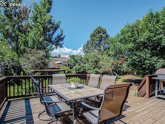 This ideal floor plan features a beautifully updated interior and offers 4 bedrooms, 3 Baths, separate dining room, home office and 2 generous living spaces. Master Bedroom with double closets and attached ¾ bath fully updated with tile flooring and surround. Newer carpet and tile flooring throughout, family room with gas log fireplace and river rock surround, kitchen with granite countertops and island with 2 stool breakfast bar, 6inch baseboard throughout, large picture windows with tons of natural light and updated full bath on upper level. The backyard oasis includes a large wood deck with retractable awning, wood privacy fence, raspberry bushes, choke cherries, raised garden bed and pergola. A gorgeous sanctuary year-round. Enjoy community living in an established section of El Paso County. Situated in D-20 school district. Be prepared for 'love at first sight'!