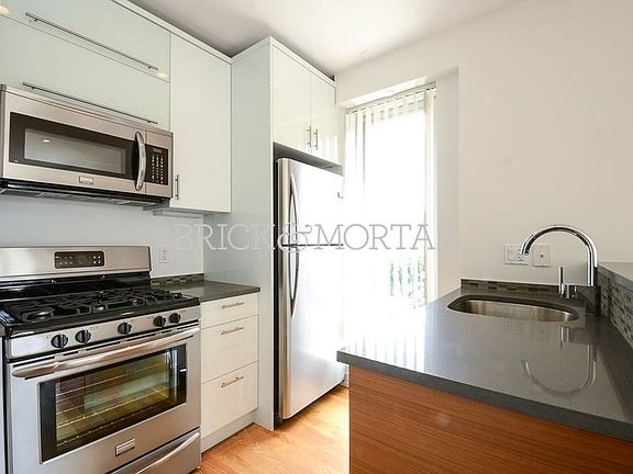 OUR THOUGHTS: This delightful 1 bedroom condo-style apartment rental is ideal for any couple or individual looking for a modern rental without the high cost of similar apartments found off of the Bedford L Train. The apartment is nicely finished with a modern bathroom with heated flooring, kitchen with stainless appliances, dishwasher, microwave, and island, and floor to ceiling glass windows overlooking your own PRIVATE YARD. A storage unit is included with the rental. Net rent advertised THE LOCATION: Conveniently this building stands on the corner of Skillman Avenue and Kingsland Ave, just 4 blocks away from the Graham Avenue L train stop, and steps away from notable restaurants. The Graham L area has become quite popular as several new businesses, shops, and restaurants have opened there doors during the past 12 months, directly on Graham Avenue and surrounding streets. Tree lined streets, unique shops, and close proximity to McCarren Park, make this location someone's sweet-spot.Modern 1 Bedroom with Private Yard and Storage UnitModern 1 Bedroom with Backyard, Laundry, and storage unit!