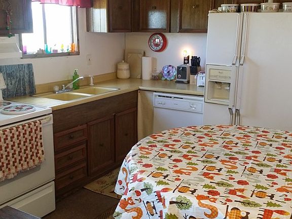 1/2 acre lot with beautiful views! Out of city limits, but close to town! With huge fenced back yard, Older singlewide that has been updated with new paint, newer carpet, updated electrical service. Furnace new in 2015.