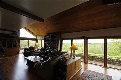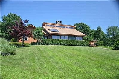 Architect designed and custom built hilltop contemporary on 62 beautiful acres just minutes from the Rhinebeck village. Lovely 3/4BR home features lots of glass to capture the stunning views of nearby hills, fields and pristine woodlands. Cedar sided, new hardwood flooring, soaring Hudson Valley Bluestone fireplace, master suite, tennis court, huge 48x40 barn and adorable 20x12 play house/guest cottage complete the picture. Hike, bike, x-country ski on your own private trails and enjoy the beautiful and unique property with lovely pond.