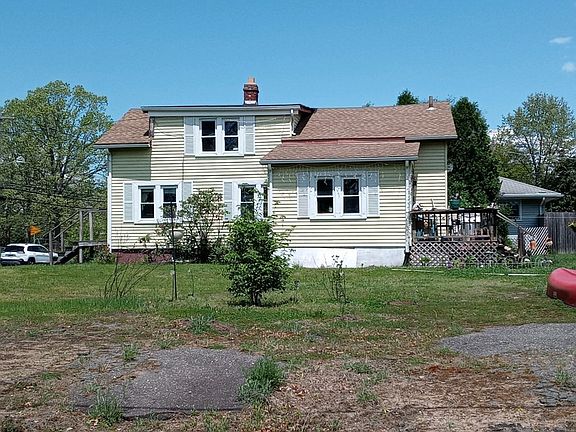 Vinyl-sided colonial on double lot. Detached garage and outbuilding with electricity. Needs updating.
