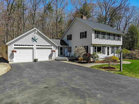 This meticulously maintained home is in turn-key condition.. all you need to do is move in! Great commuter location- under 10 minutes from downtown Concord, less than 30 minutes to Manchester, and a short drive to the lakes region or White Mountains. Easy access to Route 93, yet you'd never know it by looking at the secluded country setting that surrounds this wonderfully landscaped property. You feel at home from the moment you walk in. A cathedral ceiling over the kitchen adds so much character, as does the center fireplace with a wood stove on the other side. Four bedrooms and the downstairs office with closet could easily be used as a fifth, if needed for guests. A spacious master bedroom suite includes walk-in closet and en suite bath w/ jacuzzi. Two-car garage hides a fantastic secret, a large 28' x 22' insulated and heated work shop in the back. More bonus features: a metal roof that allows the snow to roll right off, lawn irrigation, and the most perfect chicken coop you've ever seen. Other recent improvements include a brand new, state of the art high efficiency boiler, kitchen appliances, paved driveway, well pump, and master bath shower enclosure. Come see this one quickly before it's gone!