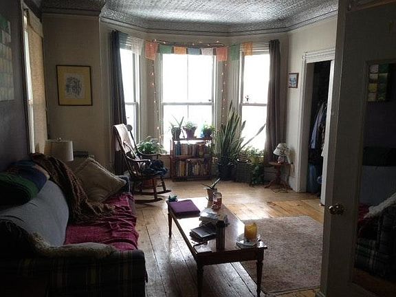 Unique loft area Some wood flooring Tin ceiling Sunny bay window NOTE: Unit has been painted neutral since photo's taken Coin-op Laundry Shared Courtyard You pay efficient gas heat and electric Hot Water and Trash Removal included Parking on street only Available DECEMBER 1, 2017