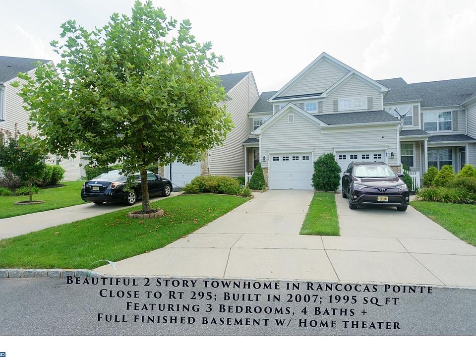 Beautiful 2 story townhome in the lovely Rancocas Pointe community of Mount Laurel! Boasting 3 beds, 2 full and 2 half baths, a 1 car garage, recessed lighting throughout, and a private entrance, this 1,995 sq.ft. home will not disappoint. Walk up your well-manicured front walkway to your pristine home. Your main floor offers glowing hardwood floors, tall ceilings, a front and back lawn sprinkler system, an open living and dining room with an updated half bath. A comfortable den opens to your well-appointed kitchen featuring an eat-in area, matching stainless steel appliances, 42" cabinetry, granite countertops, a pantry, ceramic tile floors, and over the breakfast bar, pendant lighting. This cheerful space is fantastic for indoor/ outdoor entertaining as it's complete with sliding glass doors opening on to a cozy patio, great for grilling and enjoying the low maintenance expansive green space. Back inside, and downstairs rests your fully finished basement with another half bath. This space is perfect for a home theater, family room, game room, the possibilities are endless. Walk up to the second floor to find your Master bedroom suite. With a large closet, loads of natural light, an updated full bathroom with double sinks, neutral tile floors, fully tiled shower and separate soaking tub, this space is a retreat. This level also has two additional large bedrooms with plenty of closet space, a full bath and a laundry area-how convenient! Living in this community comes with lawn mowing, fertilizing and snow removal so you won't have to worry about spending your weekend on doing yard work. You are conveniently located near the NJ Turnpike and I-295 for an easy commute and also close to PA bridges. This won't last at this price! Schedule an appointment to see your new home today!