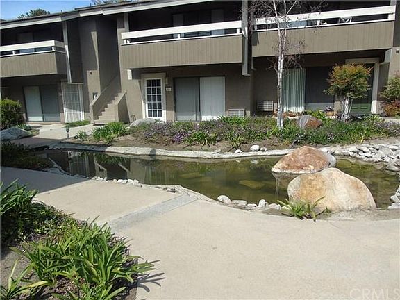 Ground level End unit with front door facing north and side door facing west approx. NOT a studio. This is fully enclosed bedroom. Located off the Yale Bl and Irvine Bl intersection. Close to 5FRwy or 241/261 Tollway. This kitchen includes a 6 mo old refrigerator. Dining ell opens to patio off sliding doors. Kitchen cabinets and Bath vanity have been painted white since the photos were taken. Kitchen with greenhouse window over the sink. Laminate wood flooring in Living room. Spacious bath with double closets and shower over tub. . Handicap accessible. Convenient location near the pool and laundry room...easy walk but not noisy. Complex with streams and waterways winding throughout. Two pools and spas with waterfalls and streams. Use tennis courts across the street. Assigned carport parking. Walking distance to shopping and banks and park.