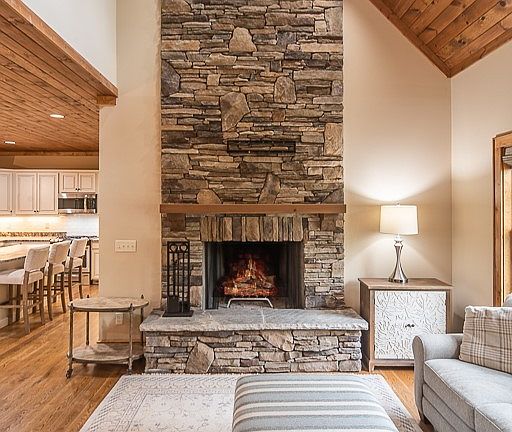 - Fireplace features: Two, Stone, Wood Burning, Outside