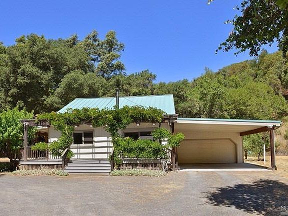 Beautiful location situated along year round creek on private road, circular drive & large front deck. Open floor plan with wood stove, vaulted ceilings, kitchen with pantry & den/office can double as guest room with own bath. Upper level has 2 bedrooms & bath. Lg 2-car garage & 2-car carport. Room for horses, 3-stalls & pasture. Plums/apples/peaches/pears are just a sampling of the fruit trees. 1 mile to Geyserville & minutes to Healdsburg.