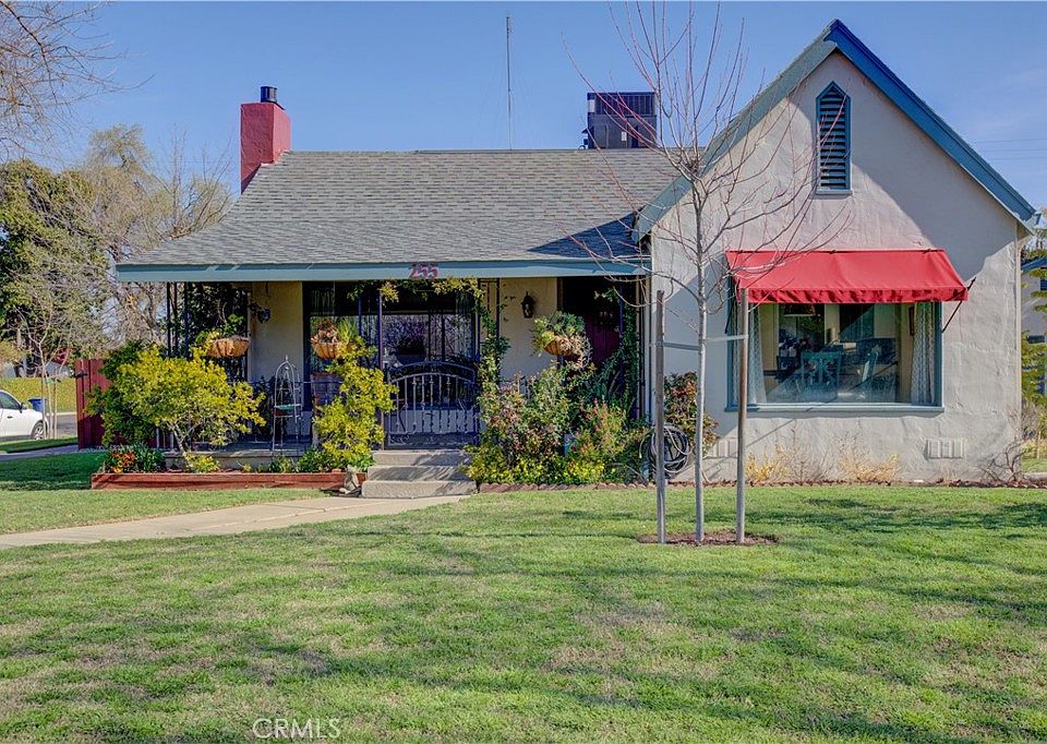 This well-maintained 2-bedroom, 2-bathroom home offers the perfect blend of vintage charm and modern upgrades. Featuring coved ceilings, lath & plaster walls, and beautiful wood flooring throughout, plus central air and heat, this home exudes character. The remodeled kitchen, complete with a built-in glass cabinet, adds a unique touch of timeless elegance while preserving the home's classic feel. The master bath has also been remodeled to combine style and comfort. Relax by the cozy gas insert fireplace, and enjoy the convenience of an inside laundry area. The home is equipped with newer appliances for ease of living. The exterior boasts a landscaped front and back yard, complete with mature trees such as lemon, red maple, bodhi tree, mandarin, and navel orange. Automatic sprinklers keep everything well-maintained, extra large 2 car garage with automatic garage door opener. Situated on a large corner lot, this property is within walking distance to downtown Merced, offering both tranquility and convenience. Don’t miss the opportunity to own this charming home with all the character and modern comforts you desire!