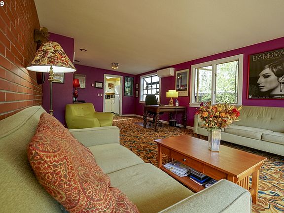 Mid century style & efficiency, popular neighborhood & schools! Designer colors, commercial carpet, marmoleum, vaulted ceilings and charm galore. Wall of glass, 2 Fireplaces, Newer membrane roof, Newer ductless heat pump + Ceiling heat. Built-ins, greenhouse windows, fenced level back yard, dining and shopping close by. Great floor plan makes the most of 1,484 s/f w/ample storage, 2 car garage with shop space. You'll love living here!