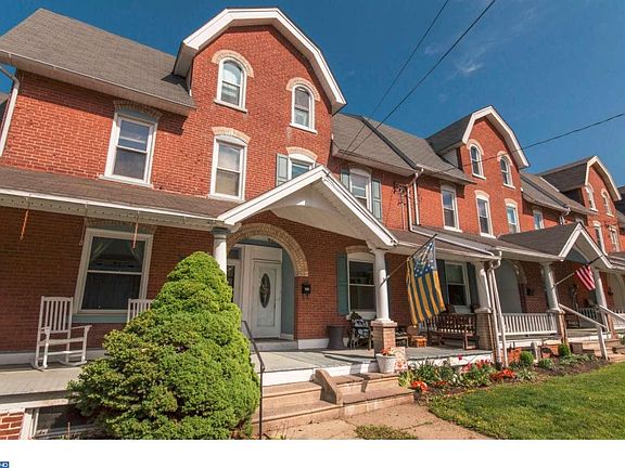 Wow! Talk about a lot of house for the money - you're going to love the character and the upgrades in this home. Charming Victorian-era townhouse in Souderton Boro adjacent to West Street Park and featuring three levels of versatile living space. The large and open front porch leads into this home, which has 9' first floor ceilings and includes a living room, dining room, updated eat-in kitchen, powder room and mudroom. The back yard has space in the back with alley access for potential off-street parking. On the 2nd floor are 3 bedrooms and the full bathroom. On the third floor you'll find a HUGE room, presently used as the 'family room' with built-in custom bar! With all of the original wood millwork and wood floors, this room boasts tons of character and will be sure to quickly become your favorite entertaining space. This room also has potential to be a 4th bedroom if needed. The unfinished basement has a walk-out exit to the back, and you'll find updated 200 AMP electric along with a new heating and A/C system, and laundry area. All this with quick access to nearby shopping, dining, PA-309 and so much more!