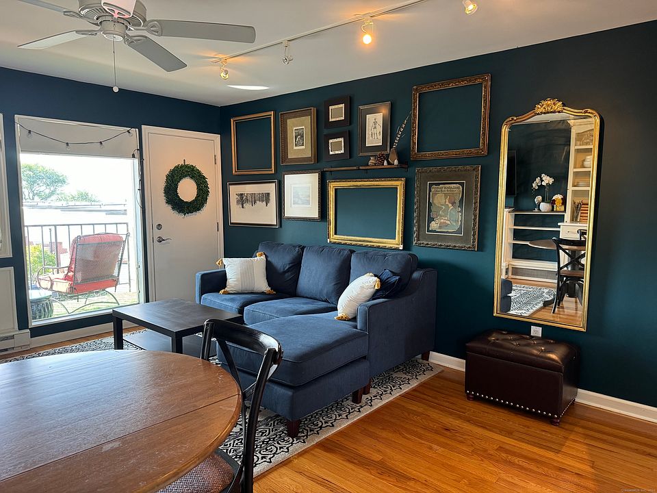 Starting out--or Starting Over? Looking for a new life-style? Check out this sensational 1BR condo on 3rd level at West Walk in Savin Rock. From the front door you know you've found the perfect place. Gleaming hardwood floors, beautifully maintained white woodwork and sliders out to a welcoming balcony with sunny views of Long Island Sound. Pictures don't lie--the open-floor plan draws you into the living room with a cozy electric fireplace & decorative shelving. And there is room for a small eating area. Open to efficient & fully applianced galley kitchen. Beautiful well-planned cabinetry is filled with space-saving extras. There is plenty of storage in the hallway including a closet with brand new stack unit washer & dryer too. The BR features a row of high windows, more privacy & easier furniture placement possibilities. The bathroom is nicely updated with high-end fixturing in tub/shower & pedestal sink. Another double closet with organizers. Entry hallway custom cabinet/storage piece will remain. Sitting balconies outside both front and rear doorways provide both morning sunrise over the water, and pretty sunsets in the western skies without getting rained on! Walk the boardwalk along sandy beach and enjoy the private fenced-in private pool, kayak rack for storage. California Dreamin! This won't last long, make your appointment today!