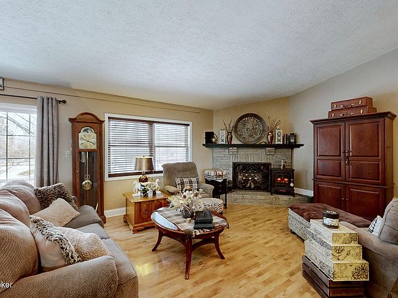 Welcome home to this private, 3 bed 2 full bath ranch home, on a nice 2 acre lot with an attached 2 car garage. Don't forget to click the video tour. This home has NO HOA and backs up to pond! Home even includes and additional storage shed/ garage on a nice mostly flat lot. Living room has vaulted ceilings and an open floor plan! The kitchen will include all appliances and opens nicely into the dinning room. The primary bedroom is large and includes a tray ceiling, an on suite bathroom and a beautiful sliding door that leads to patio access. Back deck is expansive and overlooks the privacy of the yard. Deep in the lot there is a pond (with a portion on your lot)! Showings begin on 1/31/25 and there are no offer holds, so hurry and come see this one before it is gone!!