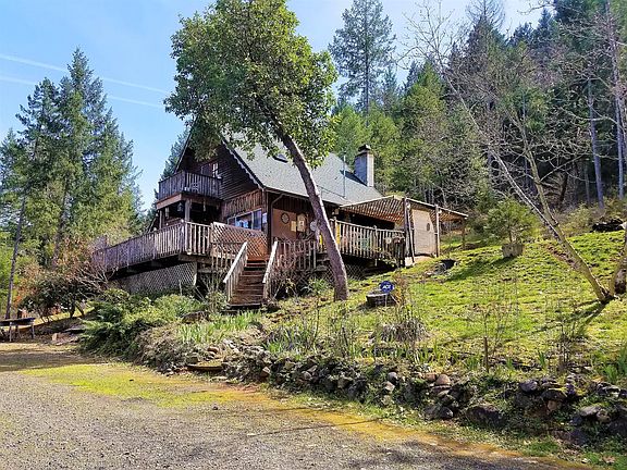 Bring ALL offers! Seller will consider all offers. Seller HIGHLY motivated! Quaint Cedar Chalet in the forest feels remote but only minutes from town. Bring your RV and Horses ON 7.34 BEAUTIFUL ACRES, there's Plenty of room for a garden, horse setup and RV parking! This comfy home features cedar beam ceilings, a rock fireplace, teak wood flooring in the living room and French doors that open on to the spacious deck. The step saver kitchen has tile flooring and newer appliances. Good size bathroom has a lovely old claw-foot tub. The master also has French doors and a balcony to take in the views of the valley below. All information deemed accurate but not guaranteed and subject to change at any time. Any one considering purchasing this property should preform their own investigation into uses, condition and future development of this property. By APPOINTMENT only!