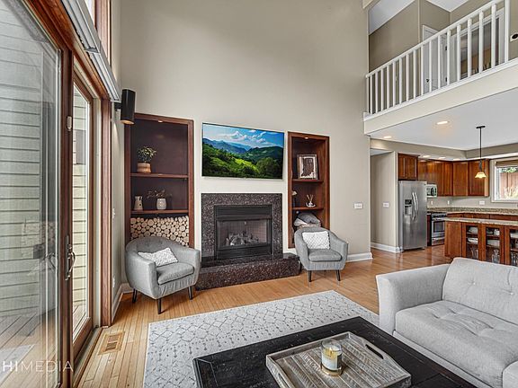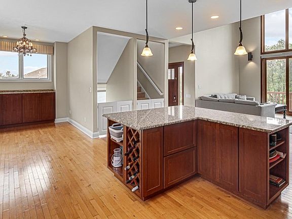 You'll love the spacious, open concept feel of this 4 bedroom, 4 bath home. The bright living room boasts 20ft cathedral ceilings with a magnificent wall of southern facing windows and a sliding door stepping out to a balcony. Large kitchen includes lots of granite counter space, cherry cabinetry and stainless steel appliances. Just off kitchen in a breakfast area with a built-in buffet, and another slider out to the patio. Dining room offers a tray ceiling and bright views into the yard. Main floor also includes a bedroom and full bath. Hardwood floors are found throughout the entire main floor. Three more bedrooms upstairs include the primary suite with walk-in closet, spacious bath with double sinks, tub and shower. Spacious patio, fire pit and deck finish off the backyard and offer lots of entertaining options. Invisible fence lines around the perimeter of home. Hunter Douglas remote blinds, Nest and security system.