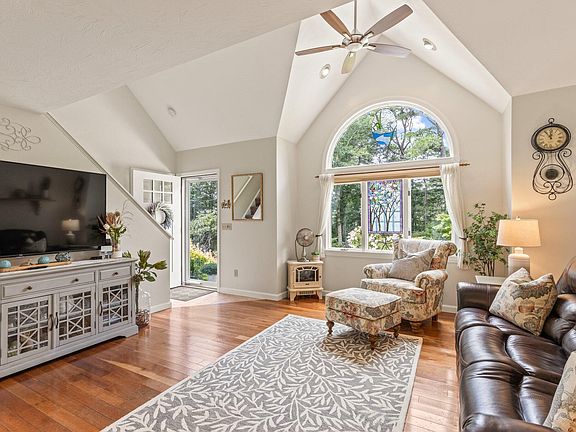 Year-Round Oasis Across from Ashumet Pond-Seasonal ViewDiscover the epitome of Cape Cod living in this meticulously maintained Mashpee home. Situated directly across from serene Pond and boasting deeded beach rights to both Ashumet and John's Ponds, this property offers an unparalleled opportunity for aquatic recreation and relaxation.Step inside this inviting 3-bedroom, 2-bathroom residence and be greeted by a spacious living room adorned with cathedral ceilings and warm hardwood floors. The open floor plan seamlessly connects the living room to the dining area and updated kitchen, complete with granite countertops and a gas stove. A convenient first-floor bedroom and full bathroom with laundry area provide added versatility. Upstairs, discover two generously sized bedrooms and the primary suite, which offers ample closet space and the potential for an ensuite bathroom. The partially finished basement provides extra accommodations for guests.Outdoor living is a dream come true on the expansive .26-acre fenced yard (complete with added dog protection for small dogs and large dogs alike), featuring mature plantings, a new awning-covered deck, and a cozy stone firepit New Blinds stay with home-Tea Biscuit, New Gutters, New Awning-(Fan over deck excluded from sale-family gift), Freshly painted inside and out, Landscaping improvements all stay with the home-fresh gravel parking, mulch, walk way, granite landscaping pavers, New fans and lighting.